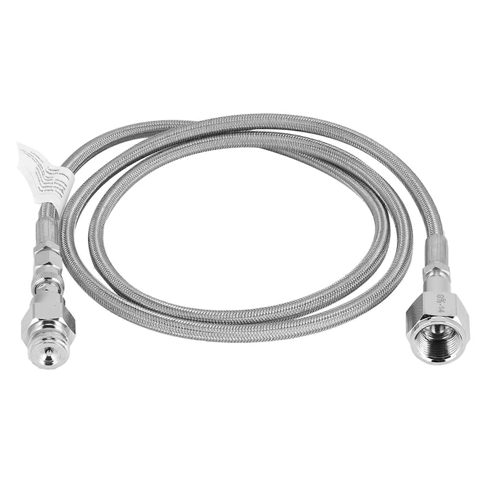 Features: 1The external hose connects your Soda machine to the CO2 tank with the G5/814 // TR214 thread easy to install. 2Made of high quality stainless steel and PTFE anticorrosion antiaging not easy to deform. 3It is durable highpressure resistance working pressure is 1500psi can rest assured to use. 4The refill adapter can be used to replenish a small carbon dioxide tank from a larger carbon dioxide tank. 5It is very soft light weight easy operation and convenient to use a nice accessory. Specification: Item Type: Soda HoseMaterial: Stainless Steel + PTFEColor: As shown in the pictureLength: Approx.1.5m/4.9ftWeight: Approx.478g/16.9ozWorking Pressure (WP): 1500psiThread Interface: G5/8-14 // TR21-4How to Use:1. Screw the pin valve into the Soda machine2. Screw the nut onto the carbon dioxide cylinder and tighten it with a wrench3. Connect the quick connector4. Open the valve of the gas cylinder5. After completion you can use the Soda machine.If you want to unscrew items from the machine:1. Close the atmospheric cylinder valve2. Press the button of the Soda machine to discharge the remaining carbon dioxide (if you do not disconnect the connector according to this guide the o-ring of the quick connector will blow off)3. Disconnect the quick connector4. Unscrew the pin valve on the Soda machine and unscrew the nut on the CO2 cylinder Package List: 1 x Soda Hose1 x Instruction Manual2 x Spacer1 x Gasket Note: 1. This item only applies to gaseous carbon dioxide not liquid carbon dioxide. It can't use siphon carbon dioxide tank!!2. Please do not disconnect the quick disconnect under pressure. The quick disconnect O‑ring will be blown off. It is recommended to discharge the remaining pressure on the Sodas machine.