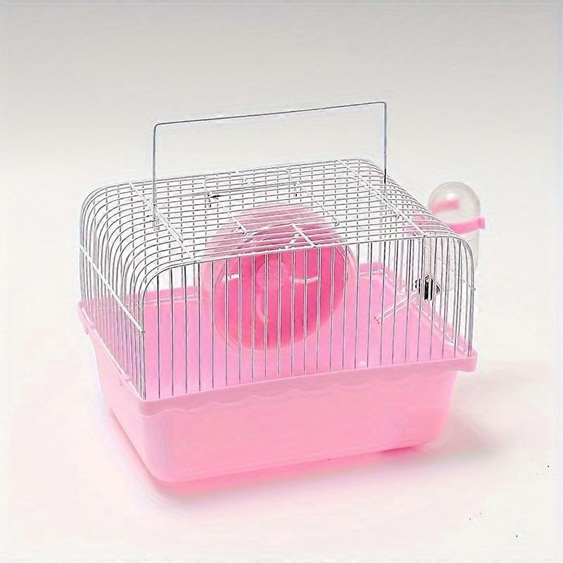 Compact Hamster Haven - Stylish Portable Cage with Carrying Handle, Complete with Assorted Colors, Water Bottle & Food Dish, Perfect Safe Travel Carri