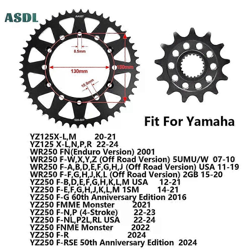 con For Yamaha YZ125 2020-2024 Motorcycle Front and Rear Sprocket 520 50T 13T WR250 WR 250 Enduro 2007-2019 YZ250 Edition YZ 125 250