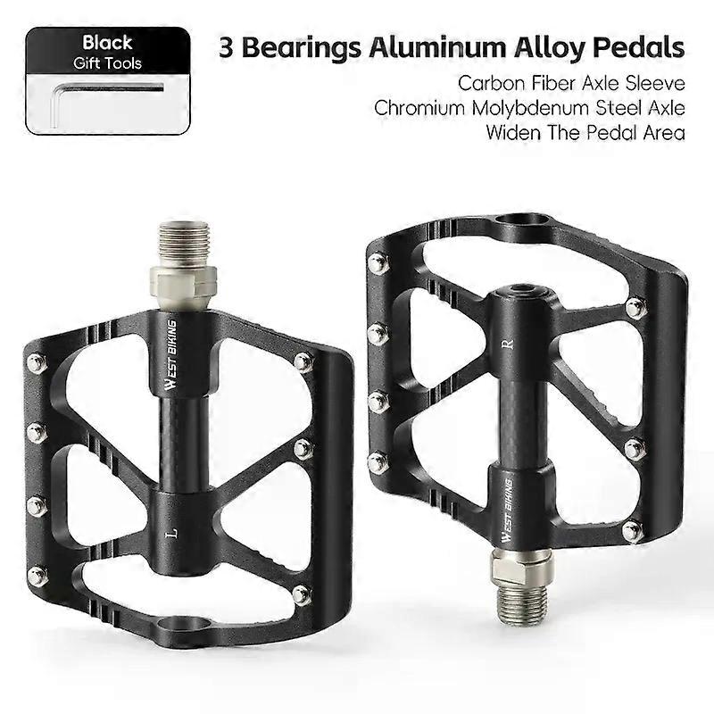 con Carbon Fiber Sleeve Bicycle Pedal Ultralight 3 Bearing Aluminum Road MTB Pedals Wide Platform Pedals Cycling Parts