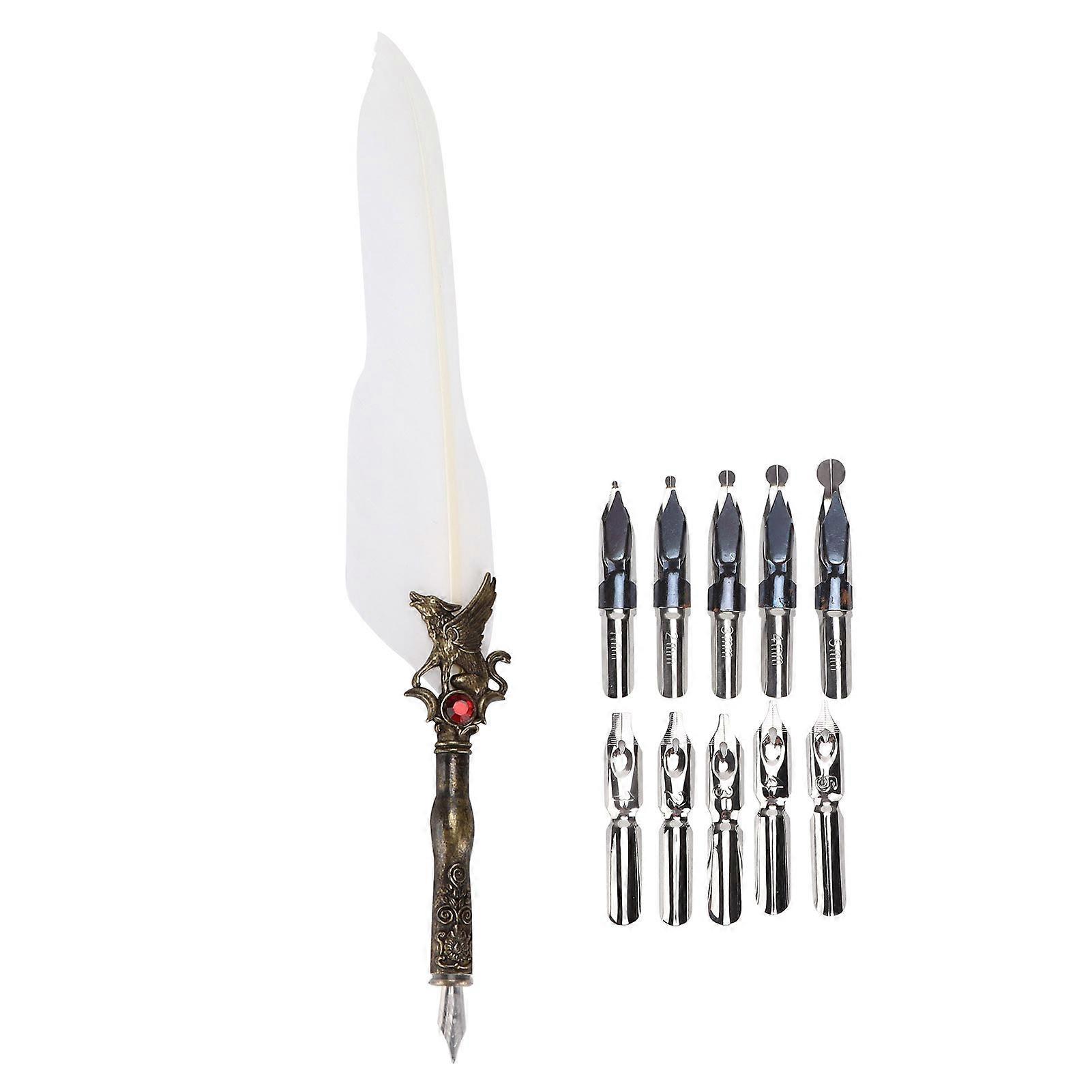 Feather Pen Craft Retro Carved Stainless Steel Dip Pencil for Signature Gift Table DecorationWhite
