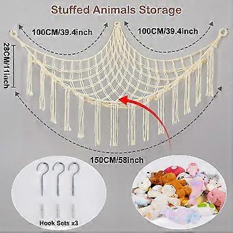 Cuddly Toy Storage Toy Storage Net Stuffed Toy Hammock Cuddly Toy Net Children's Room Decoration Hanging Organiser for Bedroom Cream