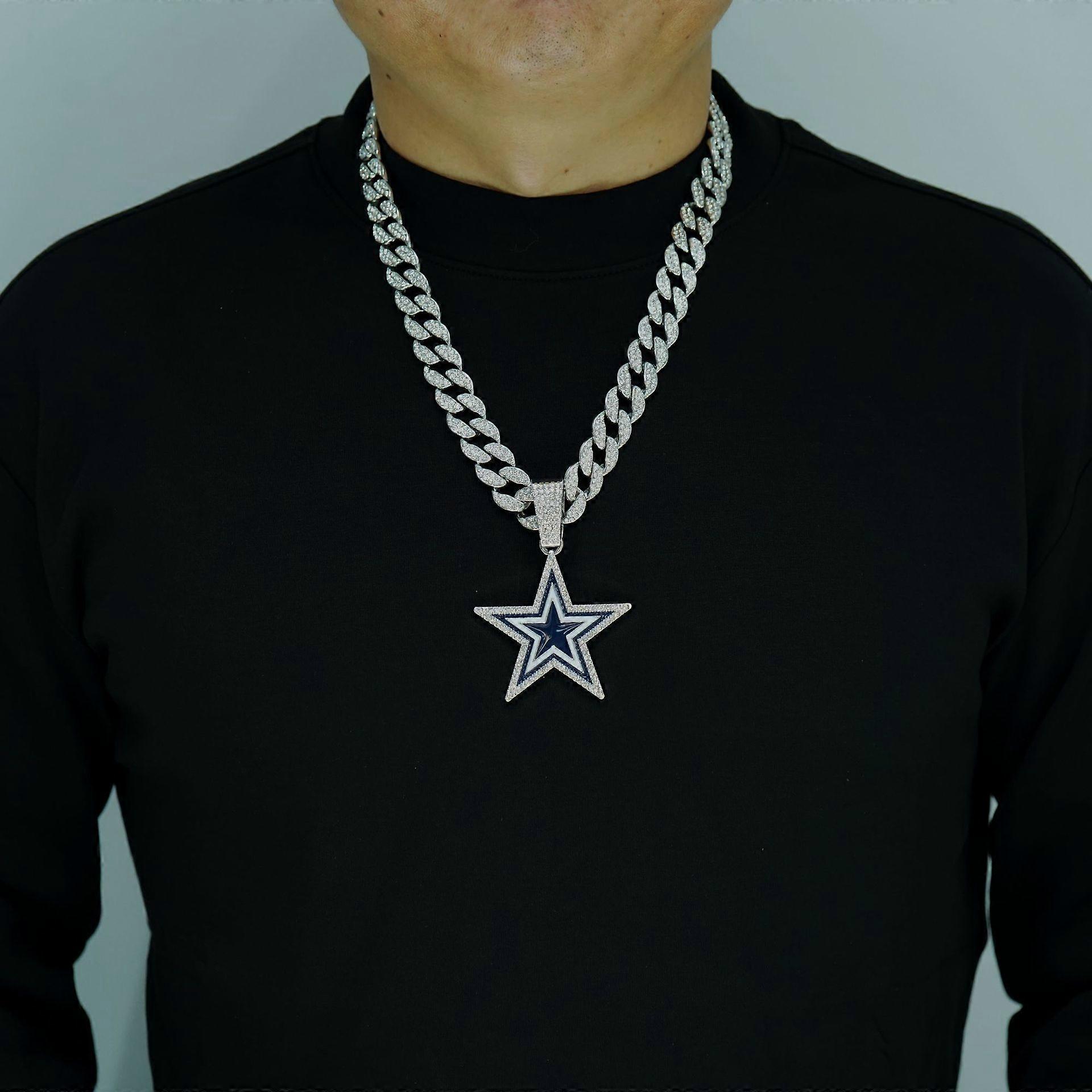 Dallas Cowboys football team badge blue oil drop five-pointed star alloy pendant necklace