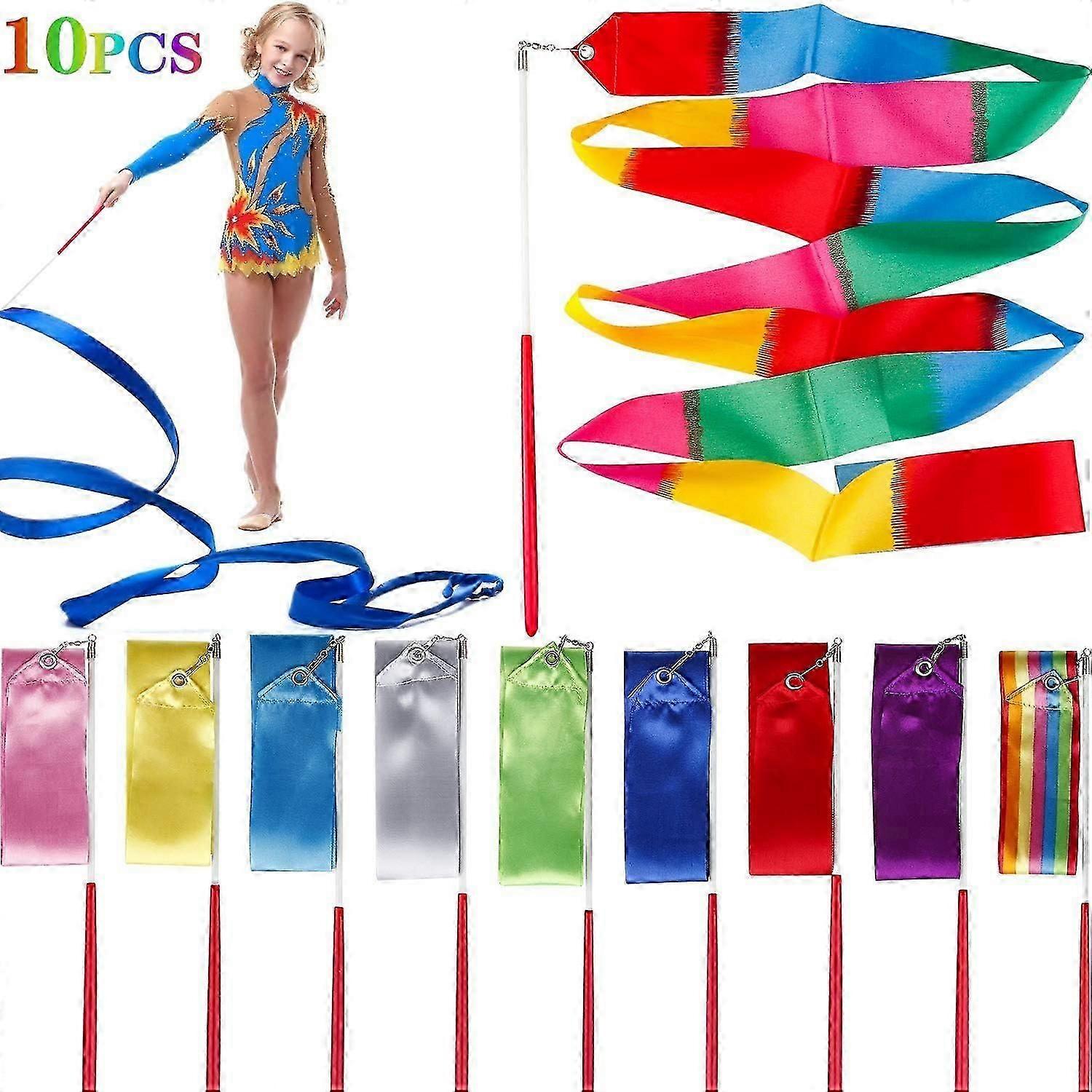 "Dance Ribbons Streamers(10 Pieces), 13 Ft Unisex Kids' Gymnastics Ribbon Wands, Rhythmic Gymnastics Ribbon"