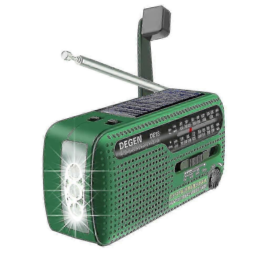 Degen De13 Crank Radio Portable Solar Radio Fm Am Sw Built-in Rechargeable Battery Led Dynamo Lamp Powerbank For Hiking Camping Ourdoor Emergency