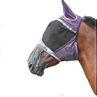 Deluxe Horse/pony Fly Mask With Nose Fringe, Uv Protection (cob, Purple)