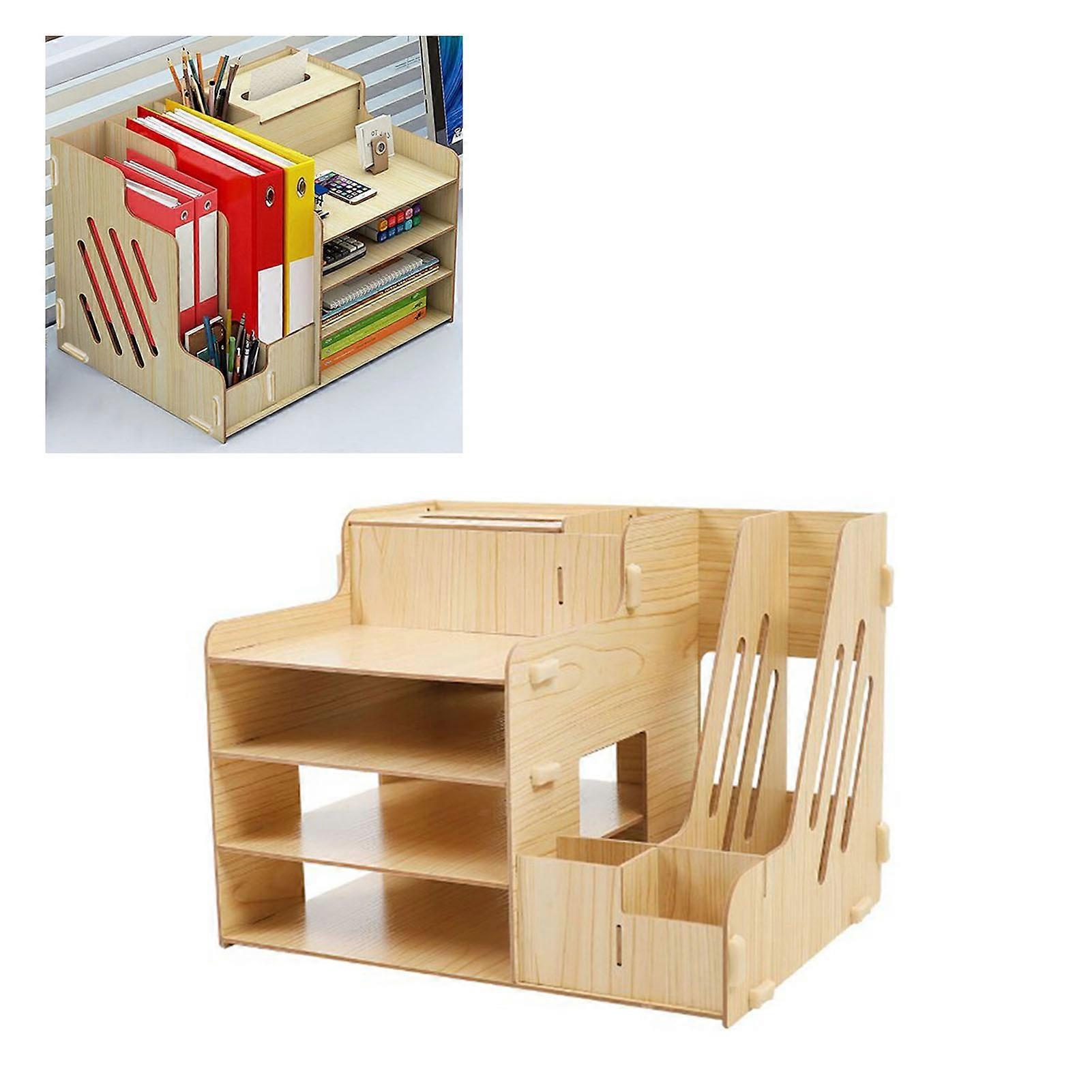 Desktop Organizer Multipurpose Modern Simple Style Wood Desktop Storage Shelf for Home School Office White Maple