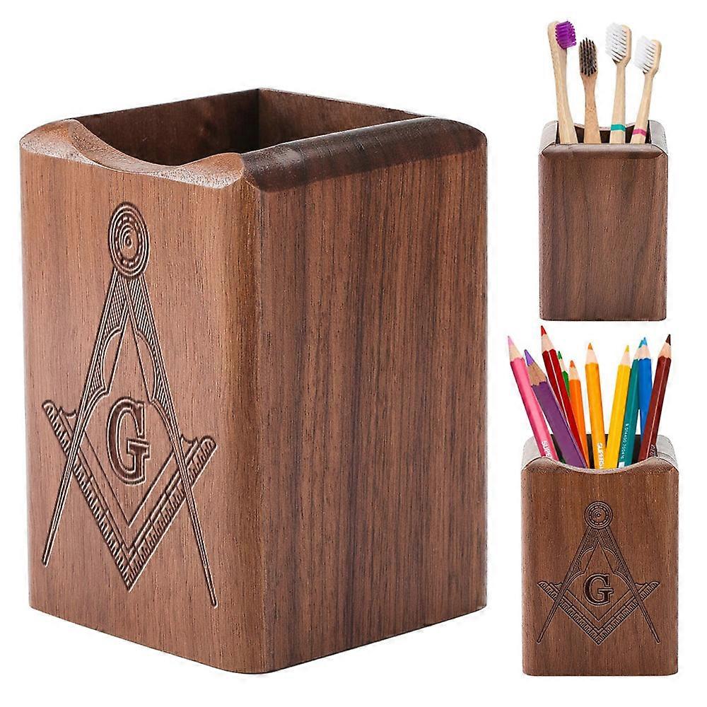 Personalized Masonic Symbol Wooden Pen Holder Office Desk Storage Box Multifunctional Organizer Desktop Pencil Container