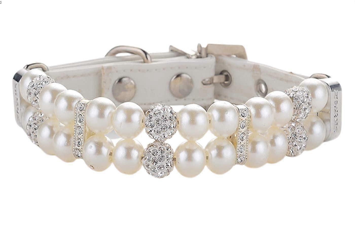 Dog Cat Pearl Collars with Crystal Rhinestone Diamond Dcor, Adjustable Cute Fashion Pet Leather Collars Necklace for Small Dog Pets Wedding Birthday