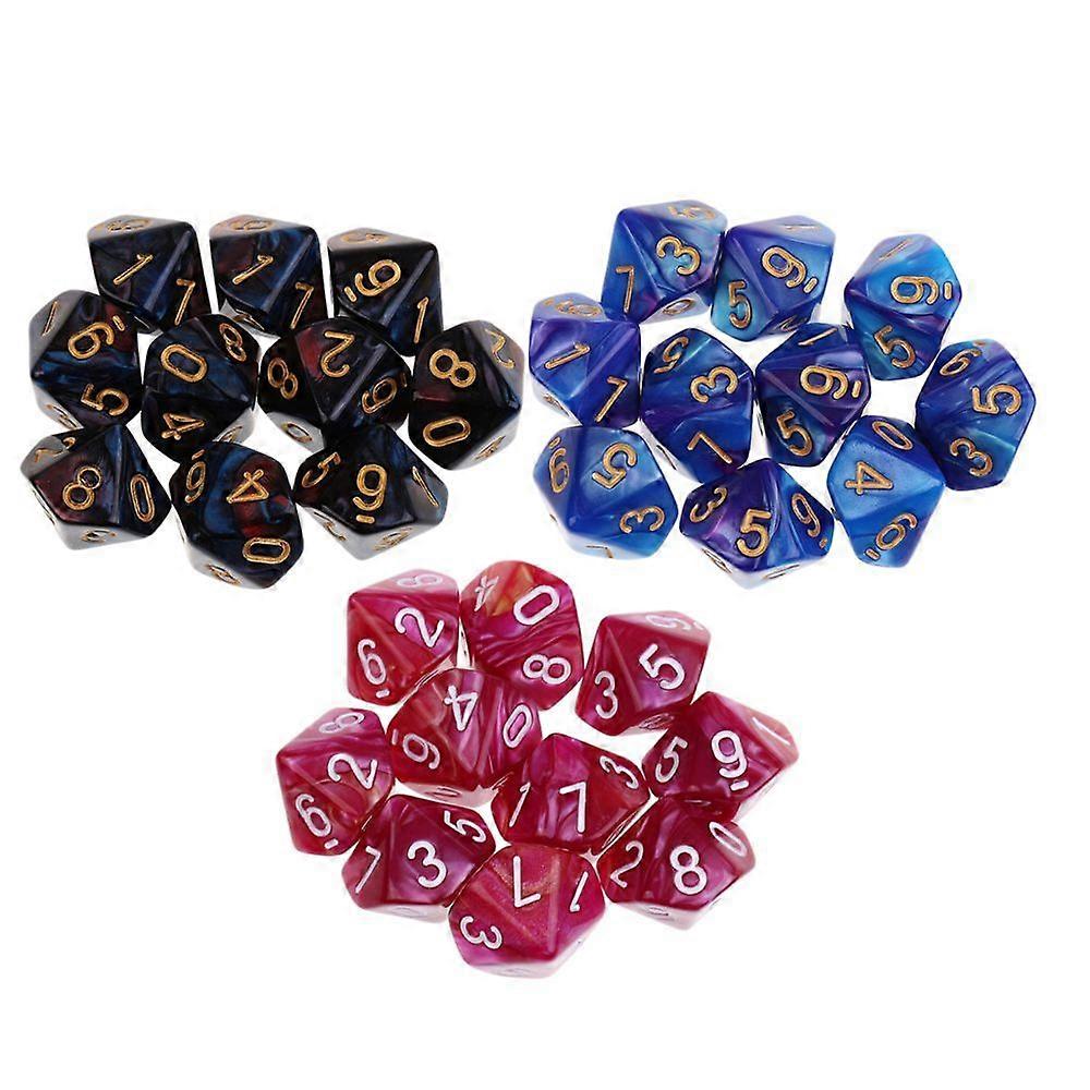 Role Playing Games -Playing Dice Highlights Generic Brand Playing Dice Description: Contains polyhedral D10 10-sided D10 dice, these are two-color dice. Playing occasions: perfect for tabletop games, dungeons and dragonsMTG RPG. Education or school supplies. Material: acrylic Side size: 16 mm Color: purple-red; Blue-purple and Red-dark blue Package includes: 10 pieces D10 polyhedral dice (purple-red) 10 pieces D10 polyhedral dice (blue-purple) 10 pieces D10 polyhedral dice (red-dark blue)