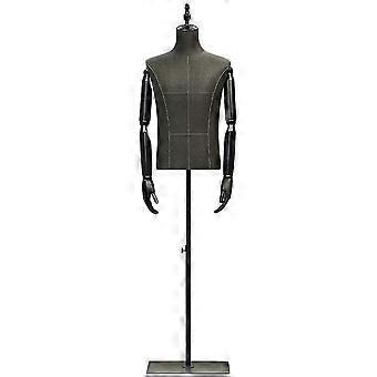 Male Mannequin Torso with Adjustable Height Stand and Detachable Arms for Clothing Display, Black