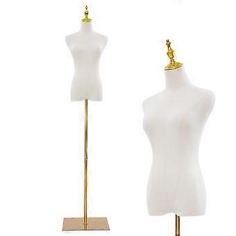 Female Dress Form Mannequin with Adjustable Display Height, Stable Cast Iron Base, White and Gold for Sewing and Retail