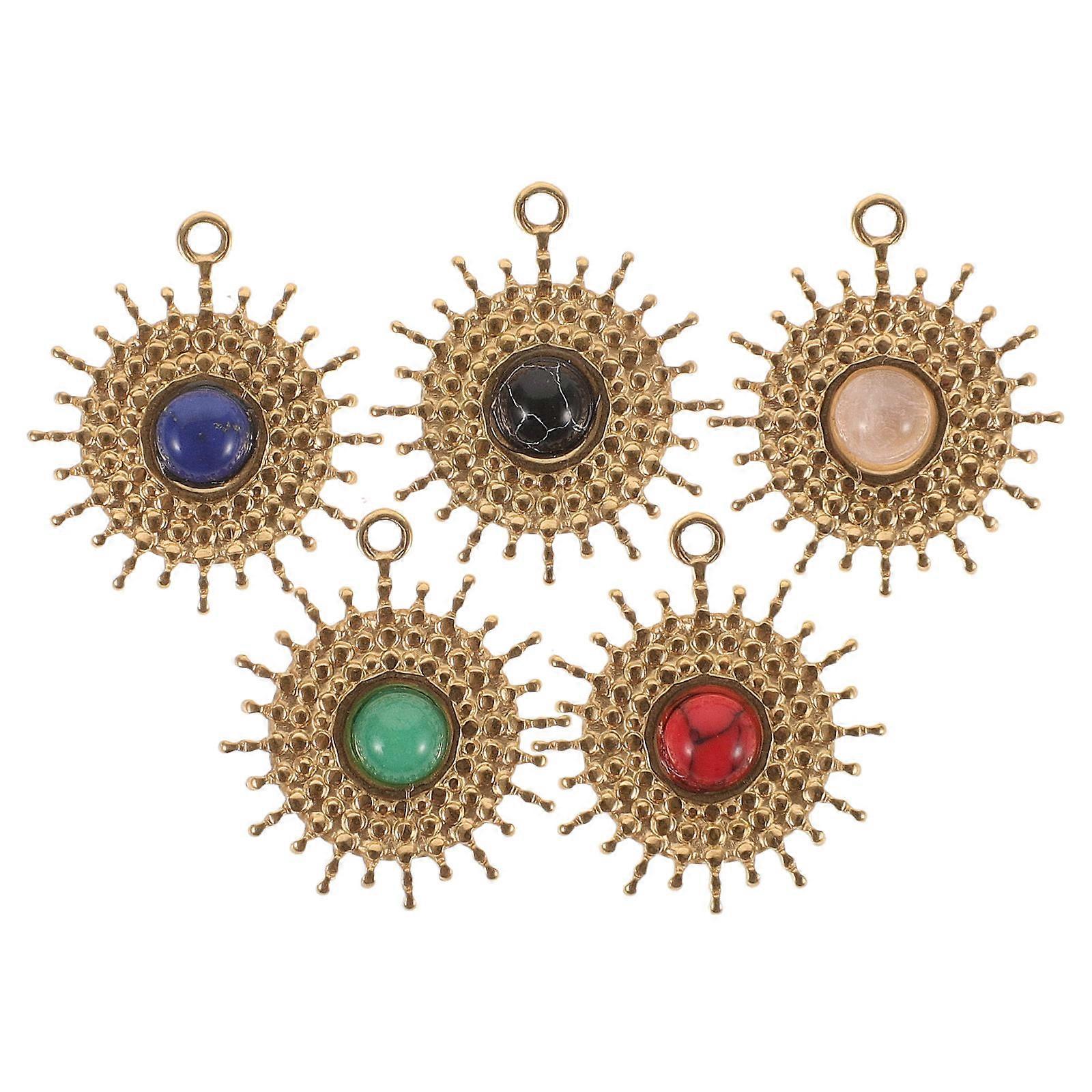 DIY Jewelry Pendants Stone Inlaid Pendant Charms For Daily Life Oval Shape Assorted Color 5Set