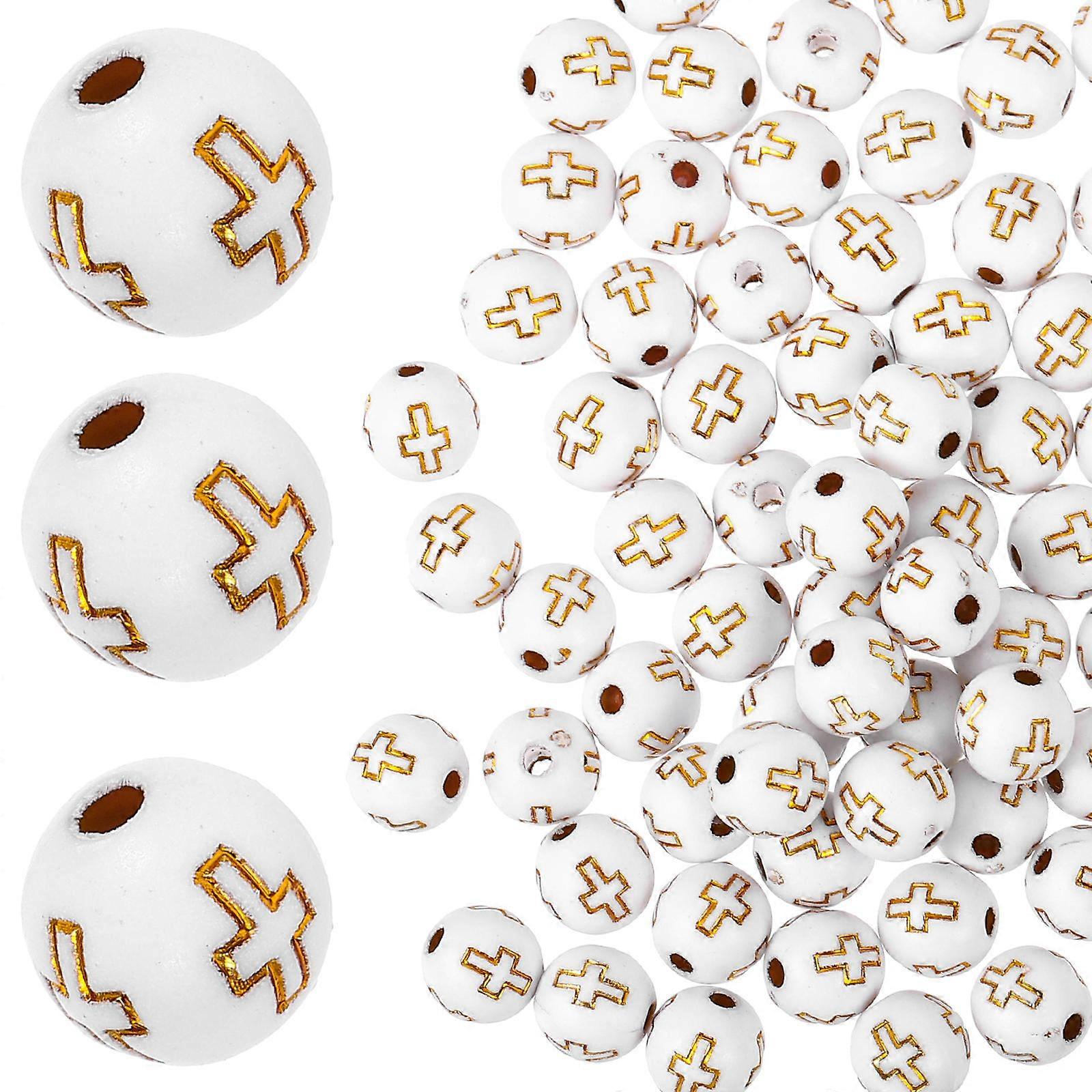 DIY White Cross Pattern Acrylic Beads for Bracelet Necklace 1000Pcs Set