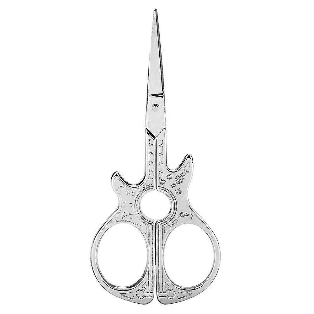 DIY Fashionable Guitar Shape Antique Sewing Shears Art Work Dresser Embroidery Scissor(silver)