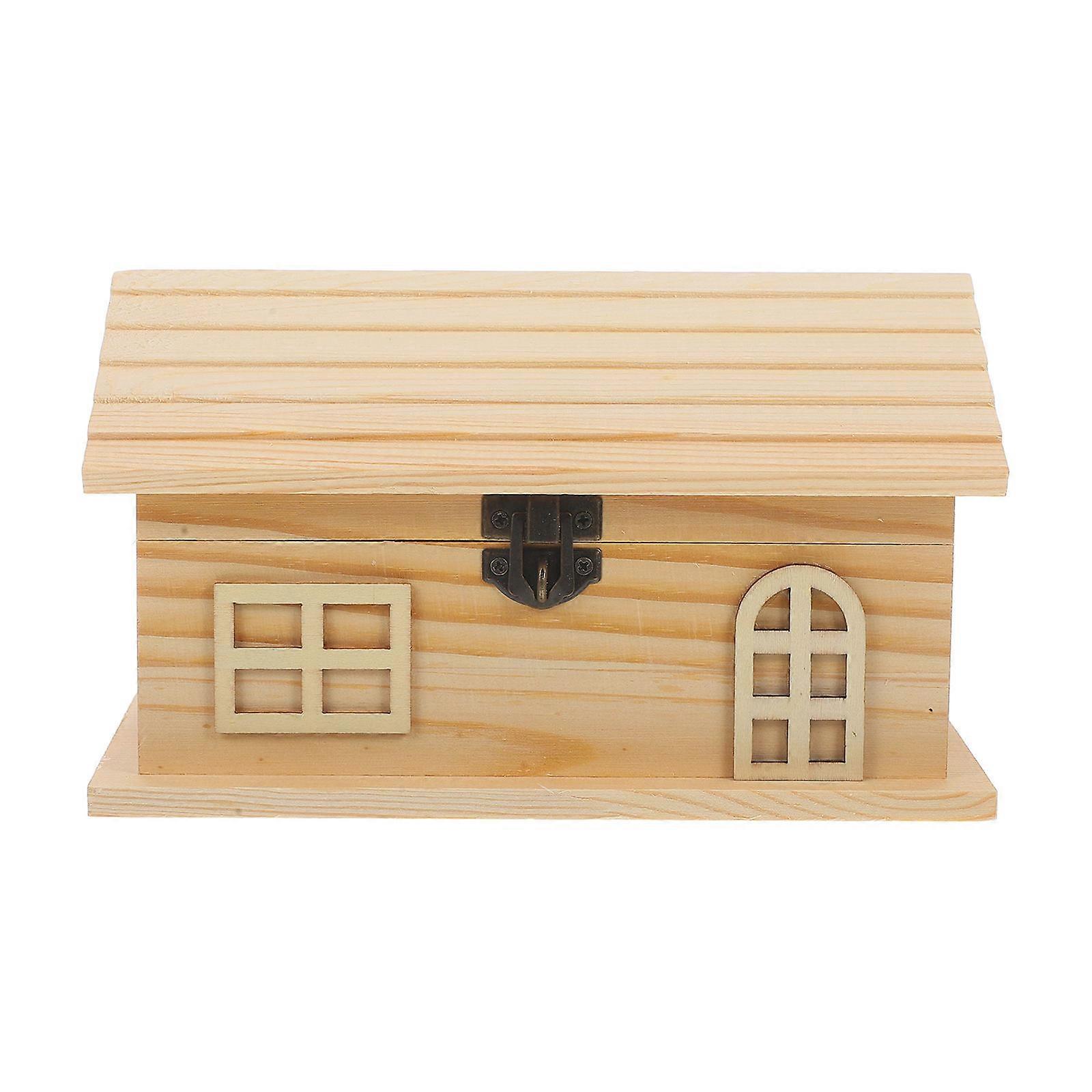 DIY Unfinished Wooden House Piggy Bank For Boys And Girls 8.17X5.31X4.72in Rustic Decoration Saving Money 2Pcs