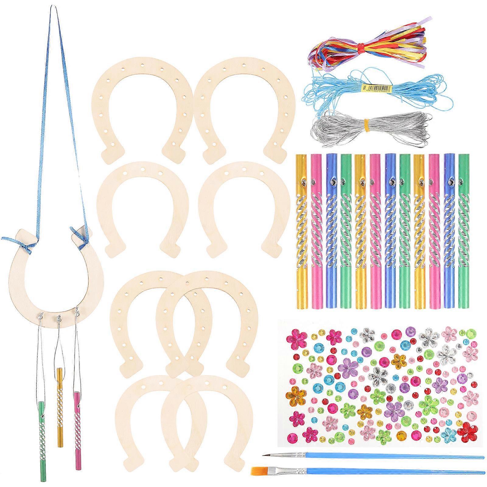 DIY Wood Horseshoe Wind Chime Hanging Ornament for Home 2Sets