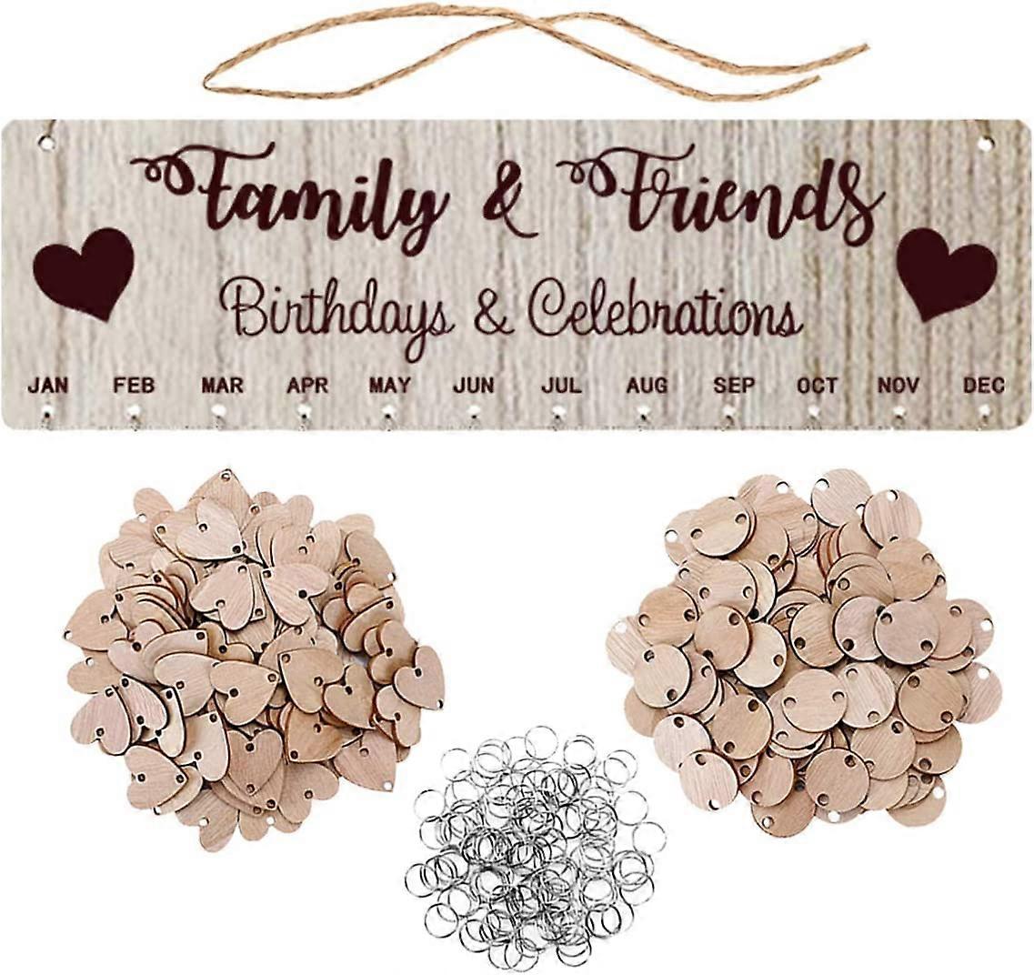 DIY wooden hanging calendar with 50 round and 50 heart pendants