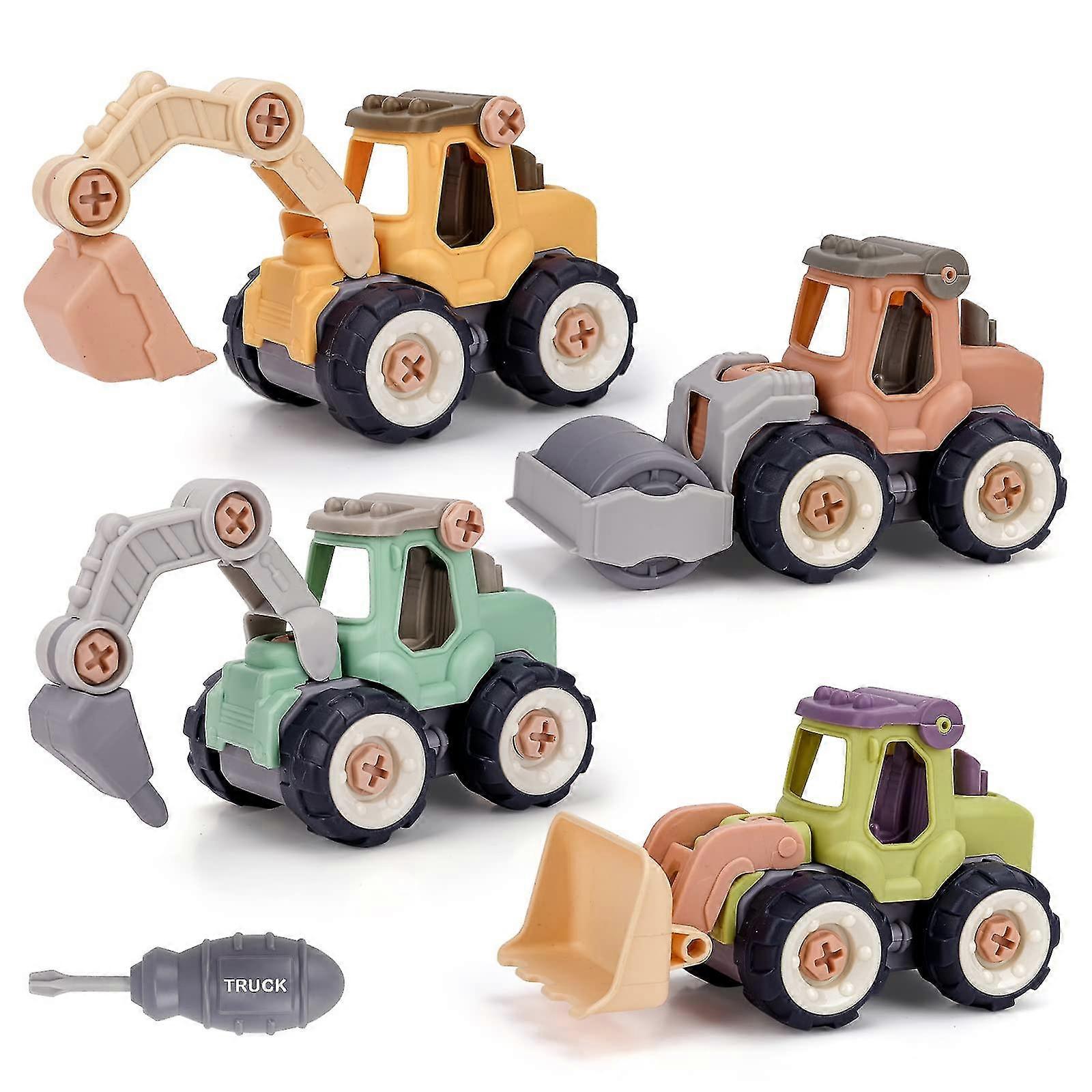 Fun Assembling-This set DIY creative assembling toys includes excavators, road rollers, soil drills, and bulldozers. 4 engineering vehicles can be assembled freely. Use the attached screw tool to disassemble and assemble the engineering vehicles. Explore the fun of assembling In the process, cultivate concentration, exercise children's hands-on ability and thinking ability, and transform into hands-on little masters. Construction toys for Kids age 2-4, let's become little engineers together Creative Thinking-This toy car for kids age 3 4 5 can be disassembled anytime, anywhere, so that children can use their hands and brains. By assembling the construction vehicle, it promotes thinking and logic. The cute construction vehicle shape, the 4 construction vehicles have their own strengths, Excavation, bulldozing and transportation, etc., can simulate the operation of the project, let children experience the joy of project construction, and bring children a world of fantastic ideas. Learn & Playing-Children can recognize the colors and the name and purpose of the engineering vehicle during the playing process, which is very suitable for assembling games or small competitions with friends. Different types of vehicles can interchange the body and free assembling parts.Guide the children to assemble the engineering vehicle. At the same time teach the kids related knowledge, stimulate the child's interest and promote the relationship with the child.