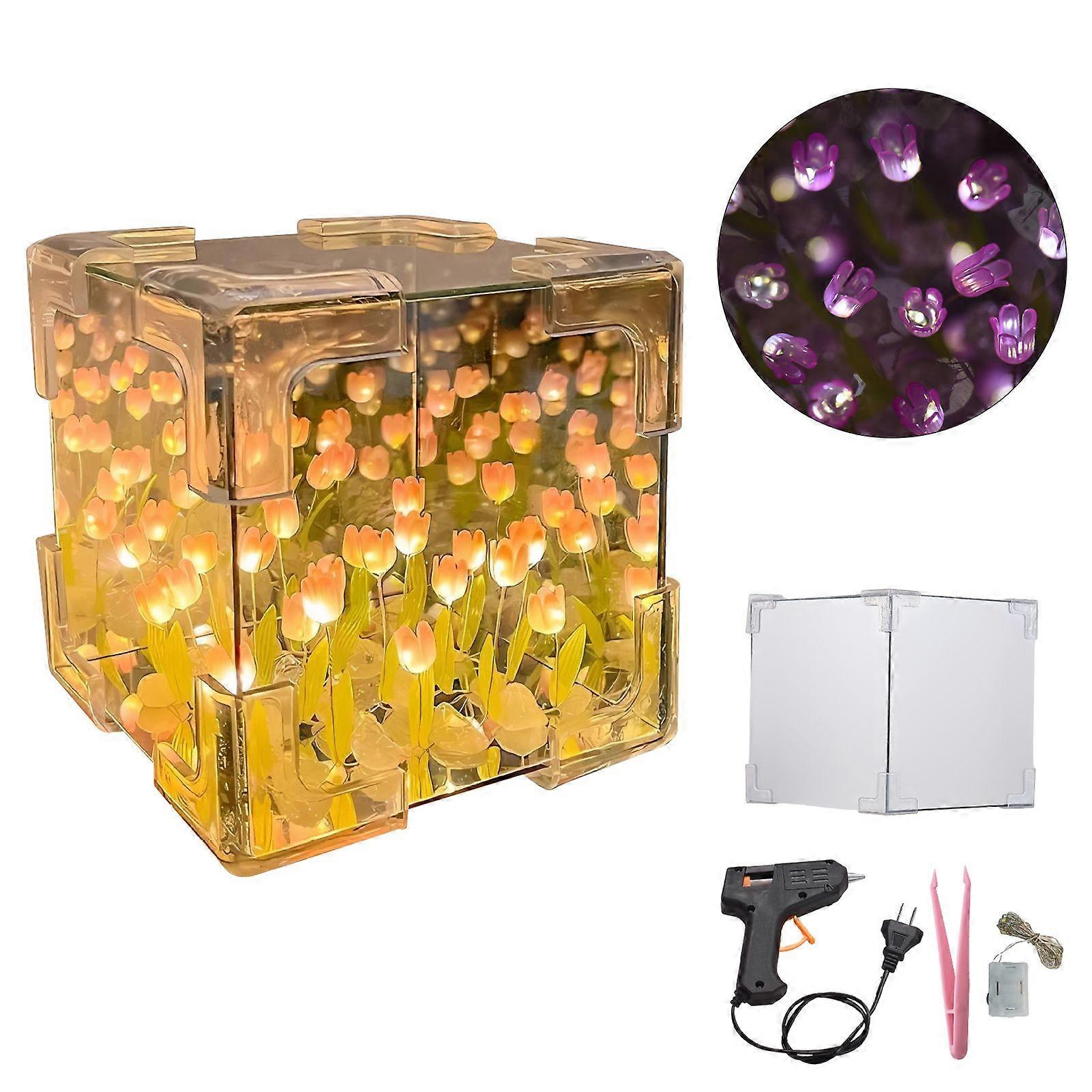 DIY Tulip Lamp 2-in-1 Mirror Flower Night Light Unfinished Handmade Craft Decorative Lamp 24 Flower for Bedroom Living Room Desktop Creative Birthday