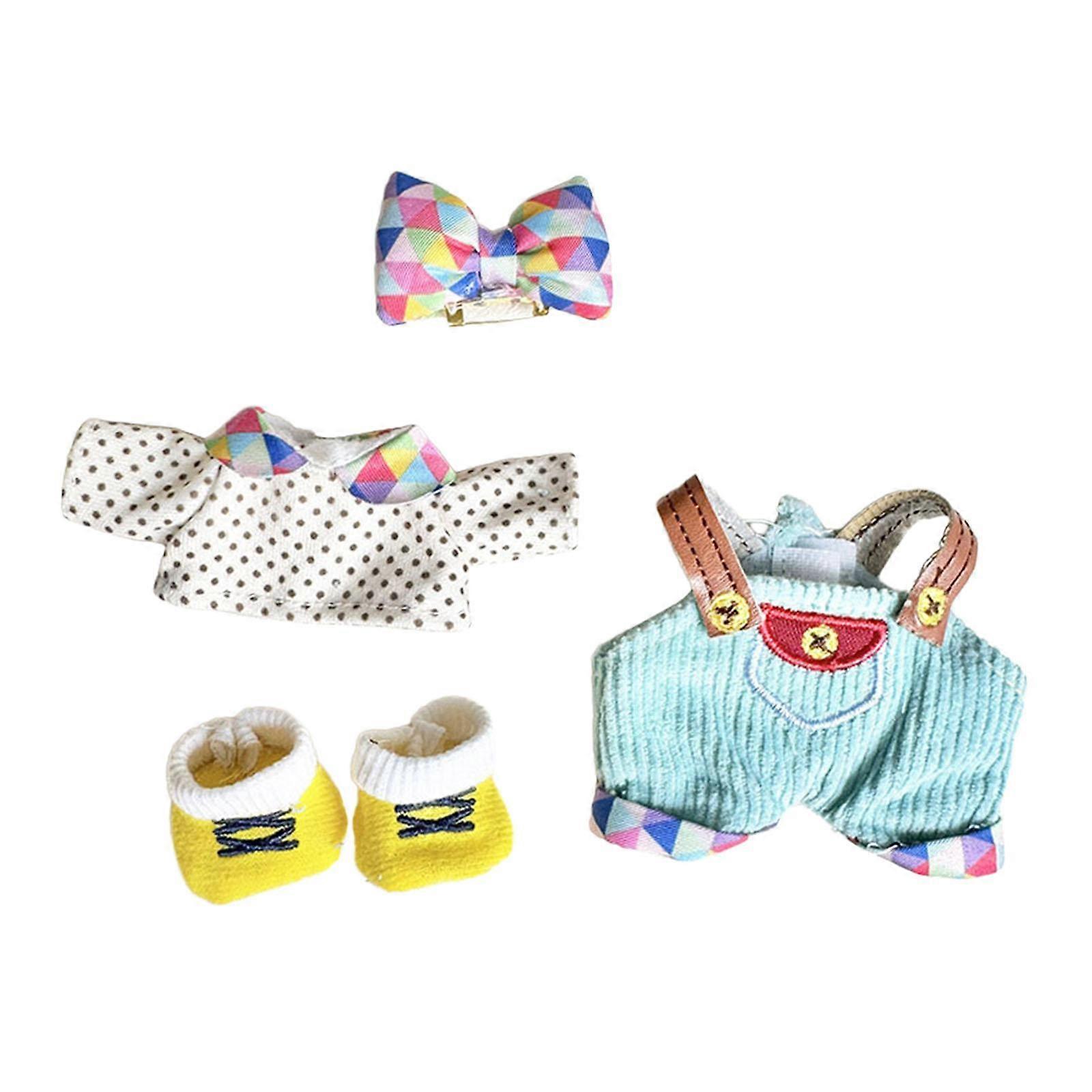 Description: Educational: The Plush Doll Wide Leg Suspenders can not only bring much fun for them, but also cultivate their hands on ability, imagination, flexibility and coordinationFit For: Cute doll Suspender pants are suitable for 6.69'' doll, you candress up according to preferences and matching needMaterial:Stuffed Doll Clothes is made of cloth material, very soft and easy to put on offDress up your doll:17cm Doll Jumpsuit Romper is suitable for kids who like to dress up with dolls or as a gift for doll collectors and enthusiastsOccasion:Plush Figure Outfits Costumes Decorate dolls, take scene photos, make handmade gifts Specification: Material: ClothSuitable for 17cm/6.69inch Package Includes: 1 Doll Jumpsuit Romper1 dollBottoming shirt1 dollHeadwear1 pair dollShoes