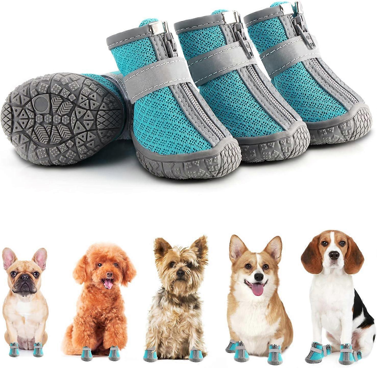 Dog Booties Paw Protector for Outdoor Walking with Reflective Strips Rugged Anti-Slip Sole for Pavement Winter Snow 4PCS Blue width 1.29 inch