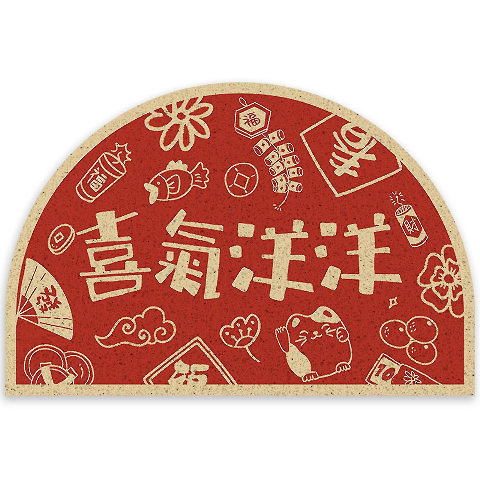 Doormat Semicircle Floor Mat Carpet Foot Pad Chinese New Year Half Round Red Fu Character Wedding Celebration Doomat