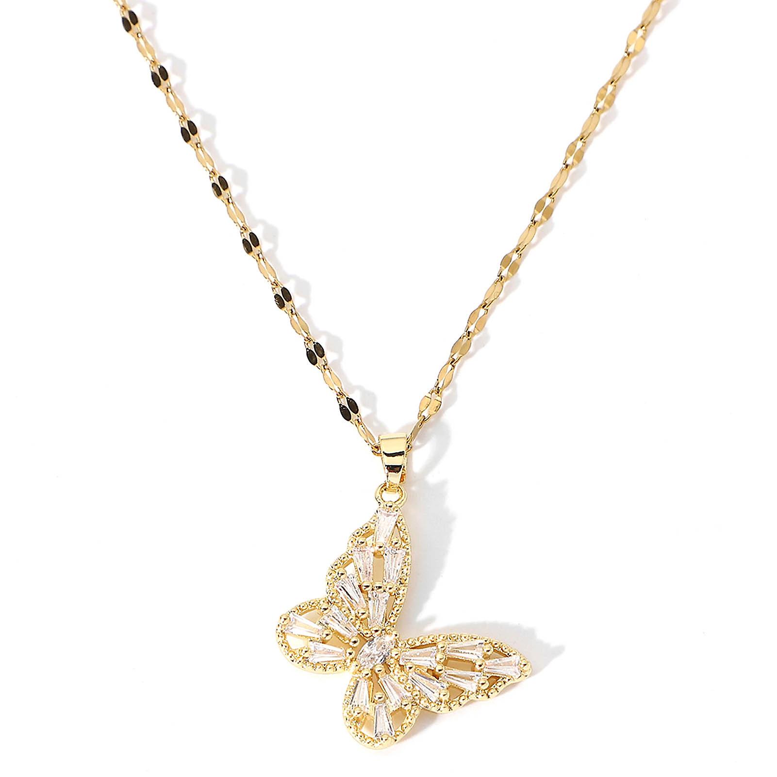 DTCY Butterfly Necklace Gold Elegant Exquisite Stainless Steel Butterfly Pendant Necklace