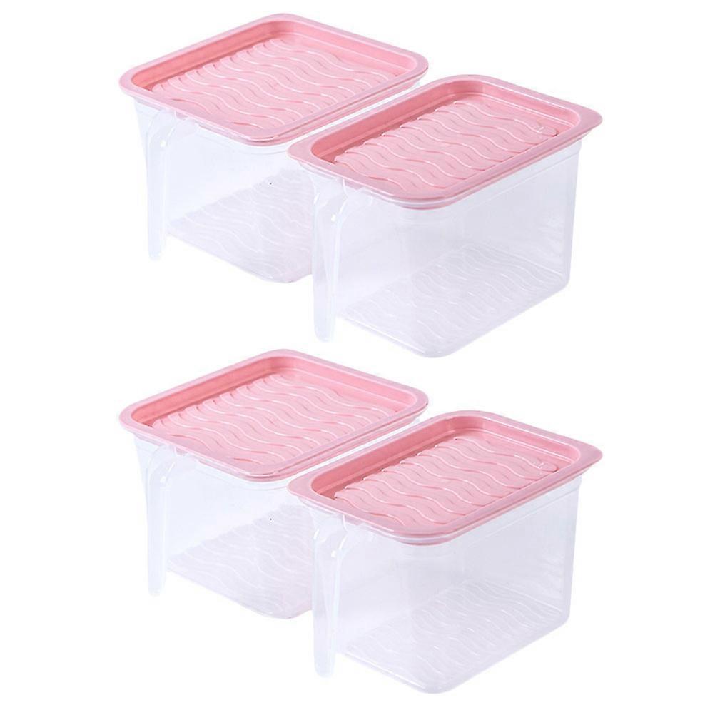 Dustproof Kitchen Storage Containers Sealed Food Box with Handle Fridge Organization Pink 4Pcs