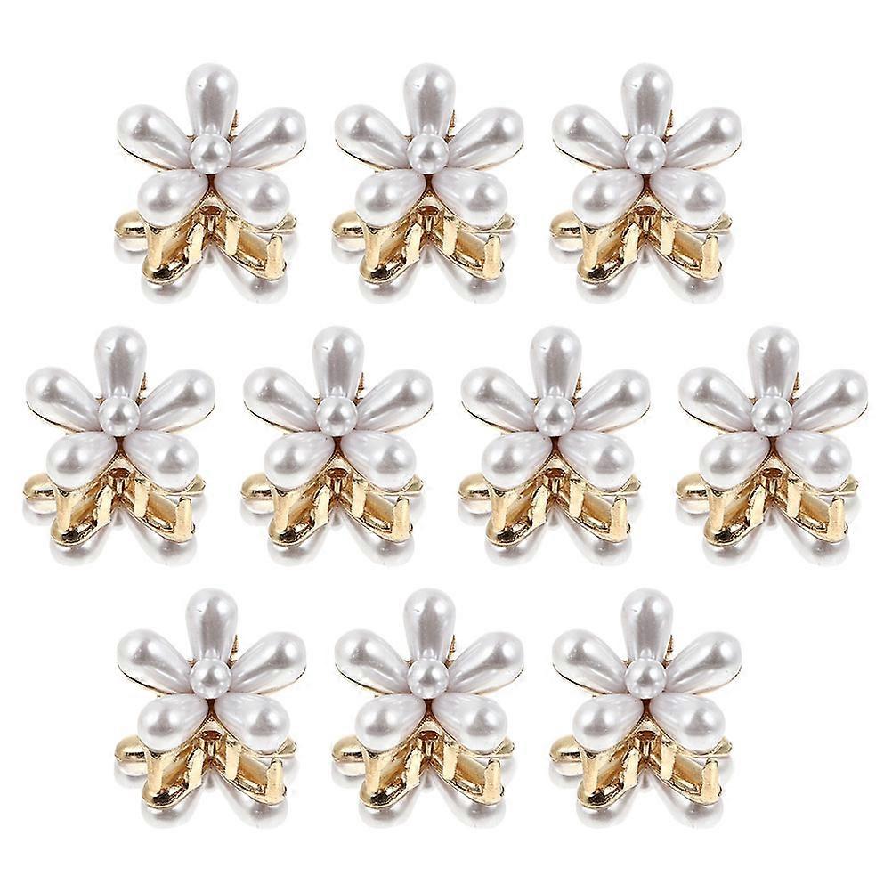 Elegant Mini Pearl Flower Hair Claw Clips for Women – Small Bang Holders for Party, Travel & Daily Use (10pcs)