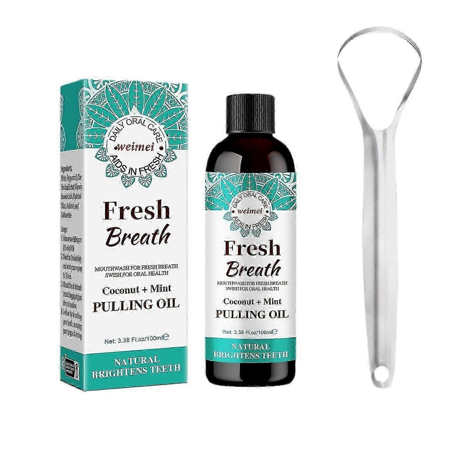 ExquisiteCoconut Pulling Oil for Fresh Breath and Oral Health, Teeth and Gums Mouthwash, Mint Oil Pulling Mouthwash with Tongue Scraper for Teeth Whit