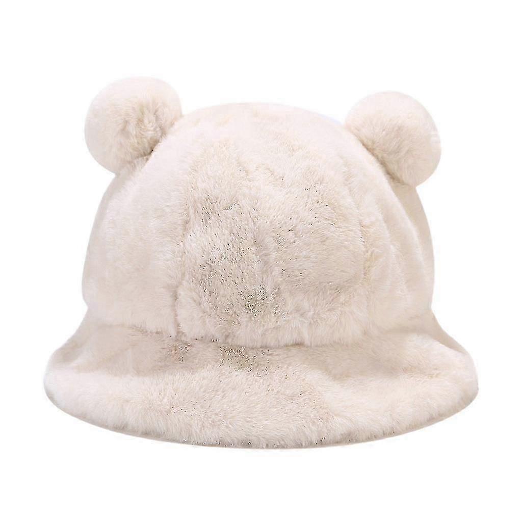Faux Fur Fisherman Hat Cute Bear Ear Bucket Hat Girl Winter Warm Flat Top Hat