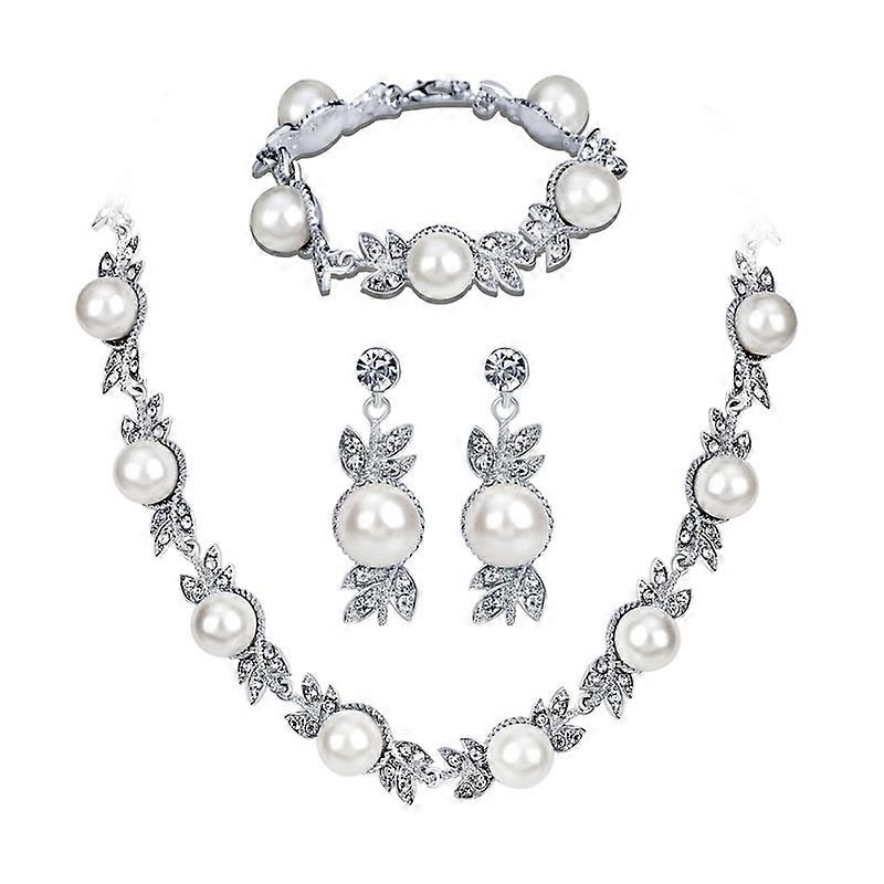 Women Faux Pearl Rhinestone Necklace Stud Earrings Bracelet Jewelry Wedding