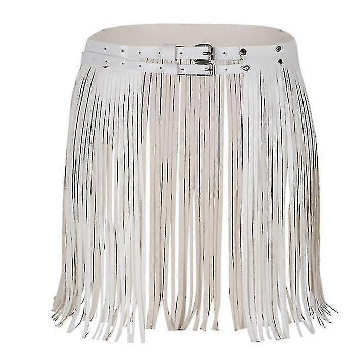 Women Faux Leather Fringe Tassel Skirt Belt Waistband High Waist Skirt