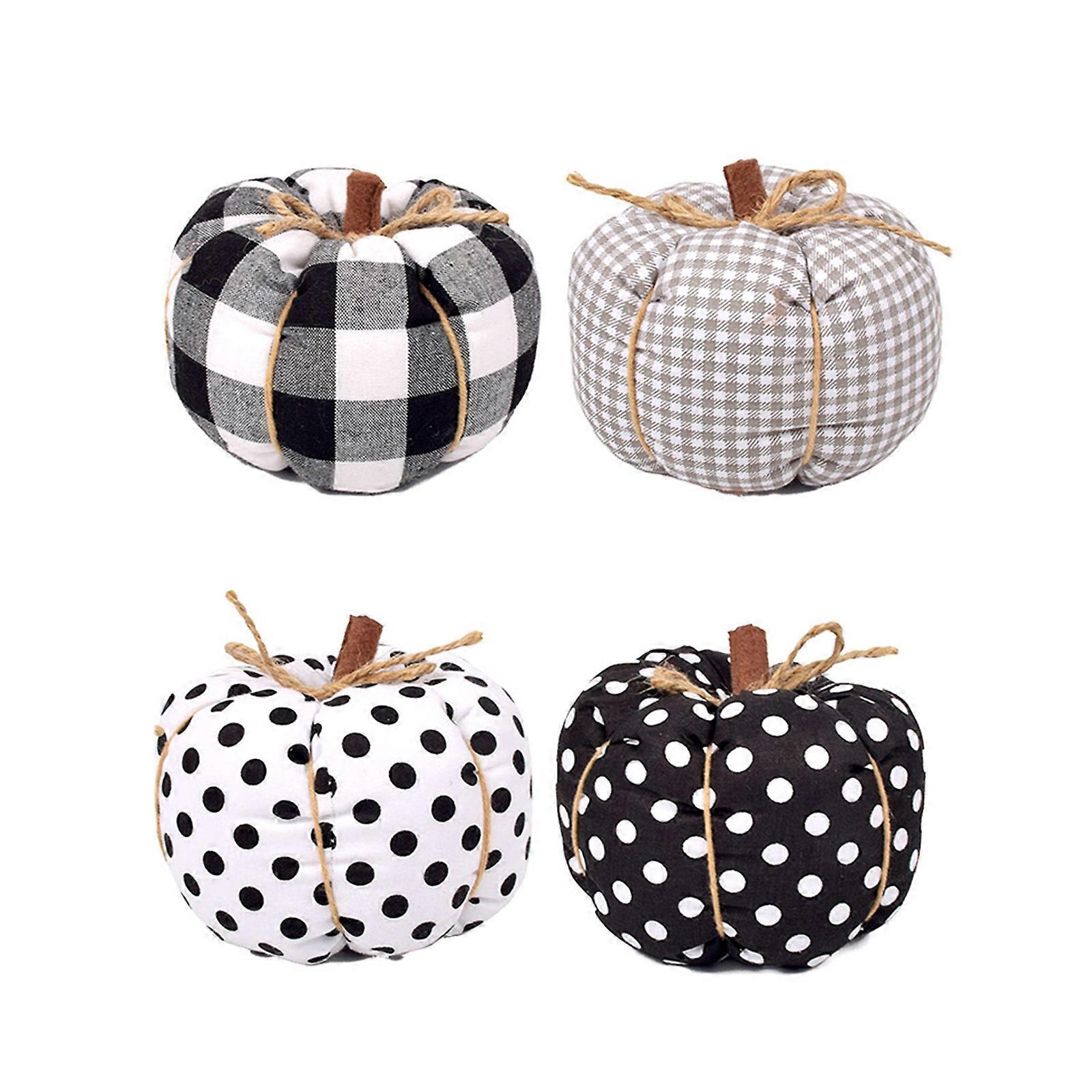 Festival Fall Decors 4.5" Miniature Fabric Checkered Pumpkins Ornaments Set of 4 Faux Pumpkins Farmhouses Decoration