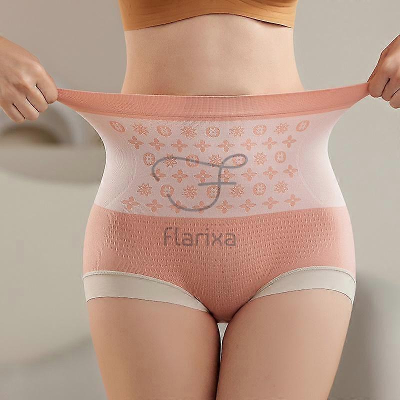 Flarixa 6 Colors Floral Ice Silk High Waist Flat Belly Panties 3D Hip Lift Warm Belly Seamless Antibacterial Breathable Briefs