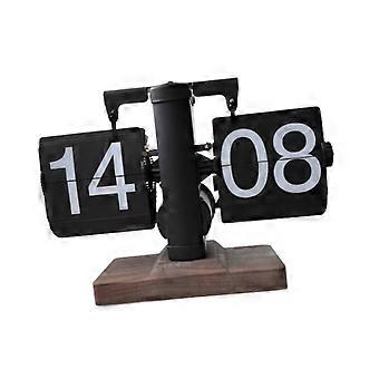 Flip Ρολόι Γραφείου με Ξύλινη Βάση Μηχανική Στροφή Σελίδας για Cafe Desktop Home Ασπρόμαυρο