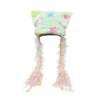 Floppy Cat Ear Beanie για Φοιτητές Ενηλίκων Αντιανεμικό Πτυσσόμενο Καπέλο με Πλεξούδες Χειμώνας Πυκνώστε το καπέλο κρατήστε ζεστό Καπέλο ποδηλασίας Ροζ πλεγμένο πράσινο h