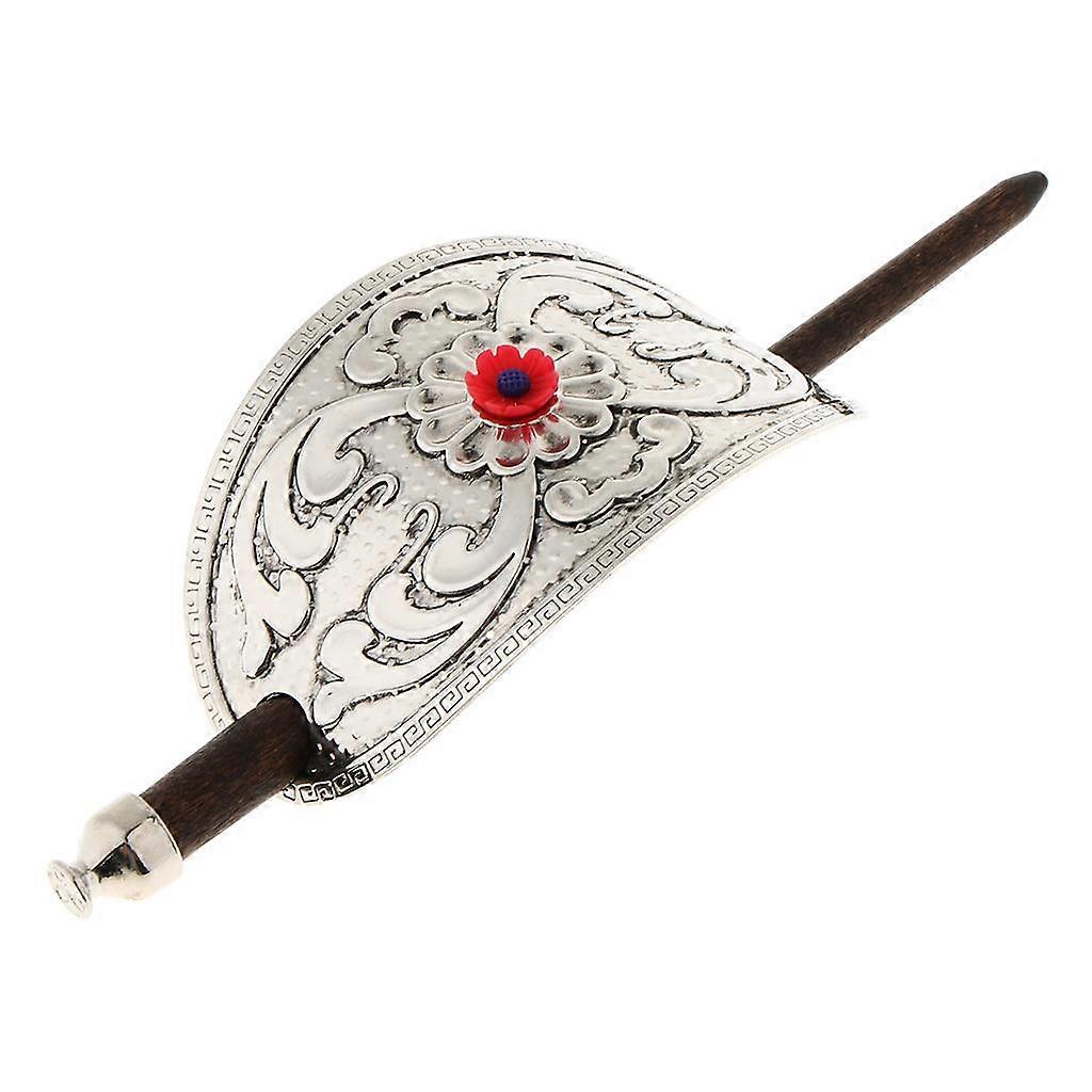 Floral Ethnic Tribal Silver Tone Metal Clip Wooden Stick Hair Accessory - 01