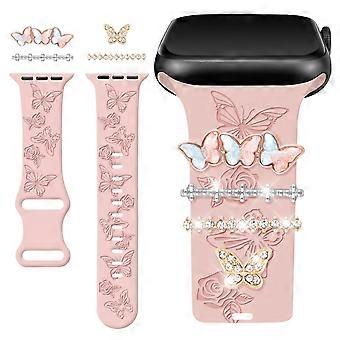 Floral χαραγμένοι βρόχοι δαχτυλιδιών ζωνών συμβατοί 40mm 38mm 41mm, ροζ/πολύχρωμοι δακτύλιοι πεταλούδας ζωνών σιλικόνης (δεν περιλαμβάνεται ζώνη)