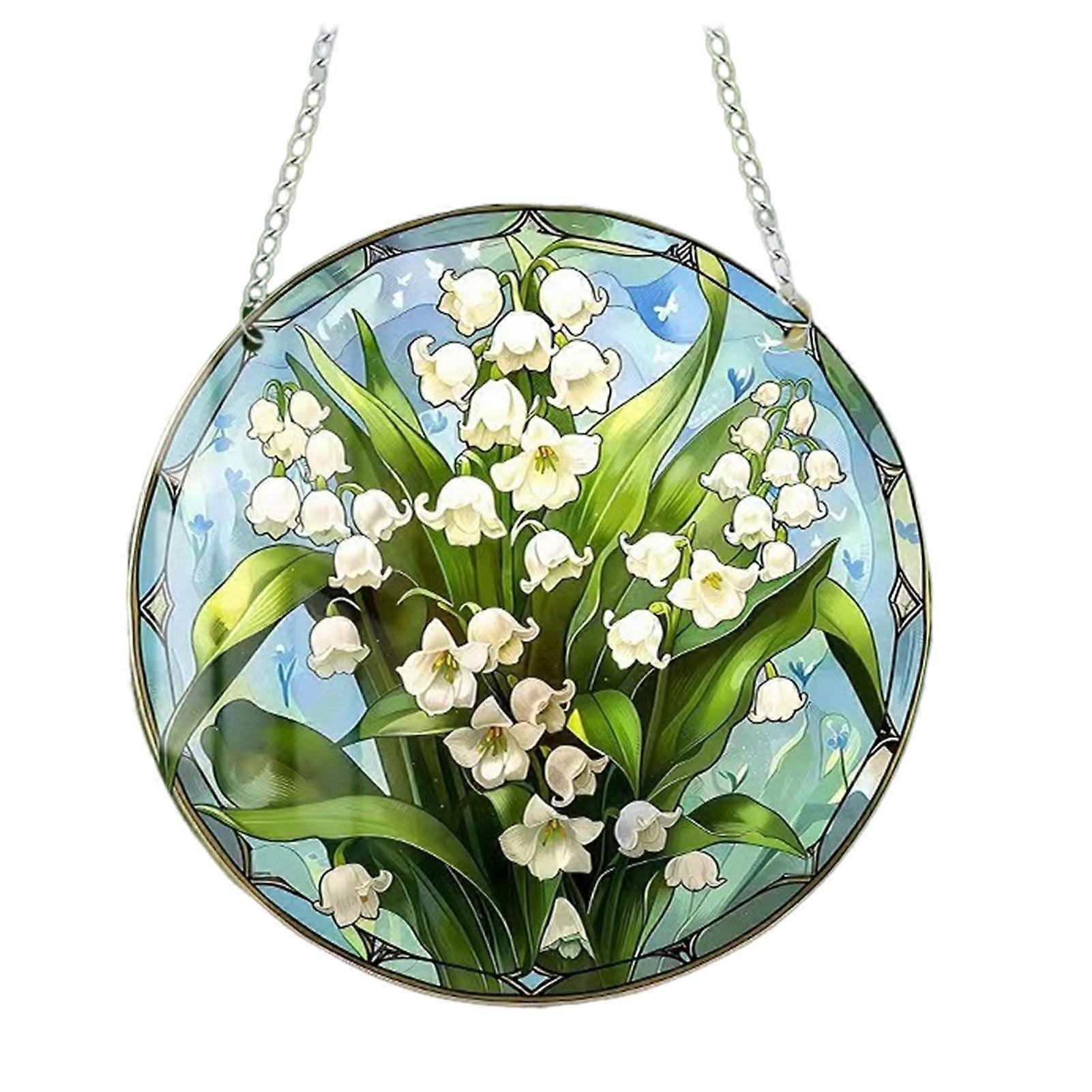 Stained Glass Flower Hanging Decoration Living Room Wall Window Hanging Floral Plants Ornament Colorful Acrylic Suncatcher Pendant