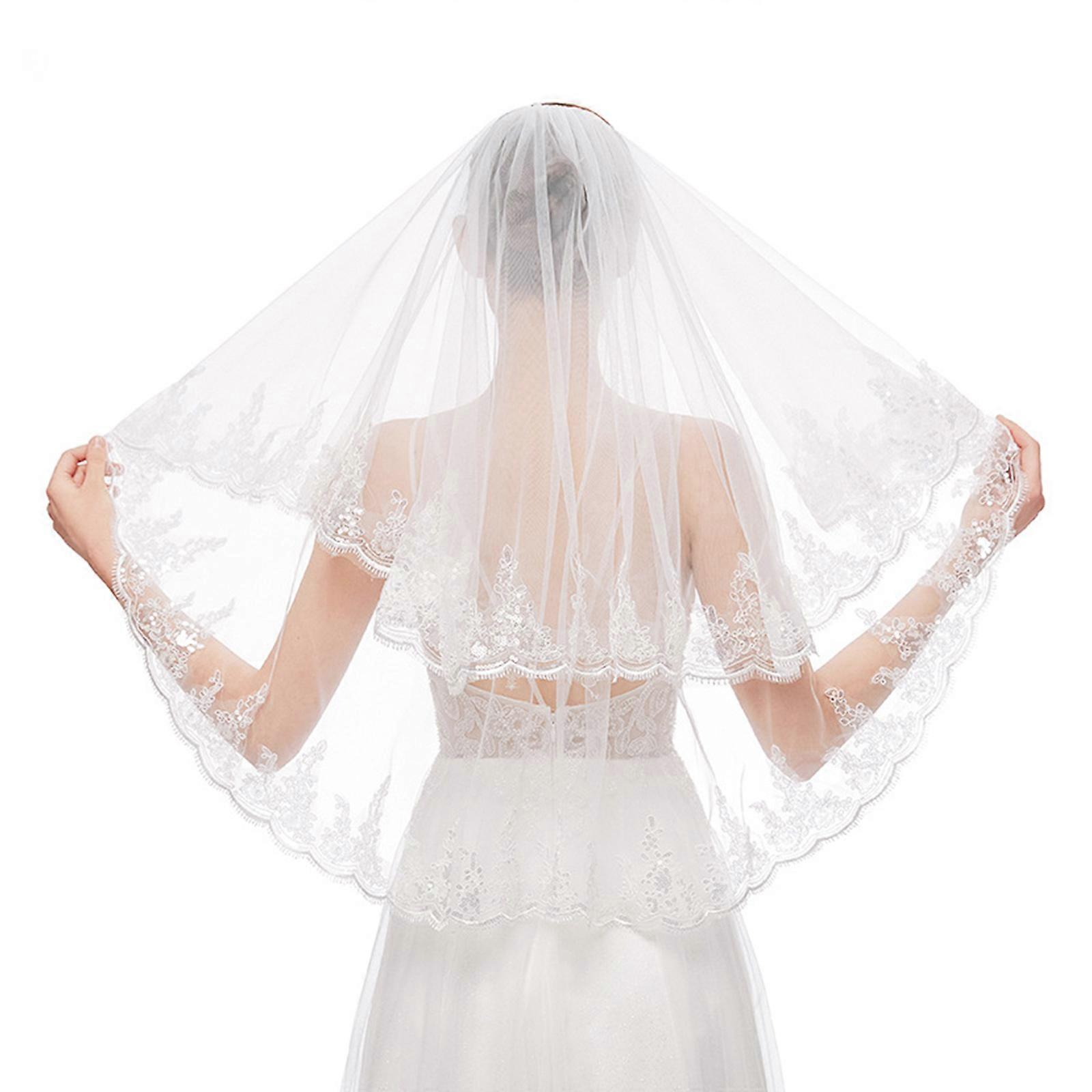 Flower Girl Veil Lace Veils with Hair Comb Wedding Hair Accessories Creamy White 2-Tier Wedding Veil Waist Length White
