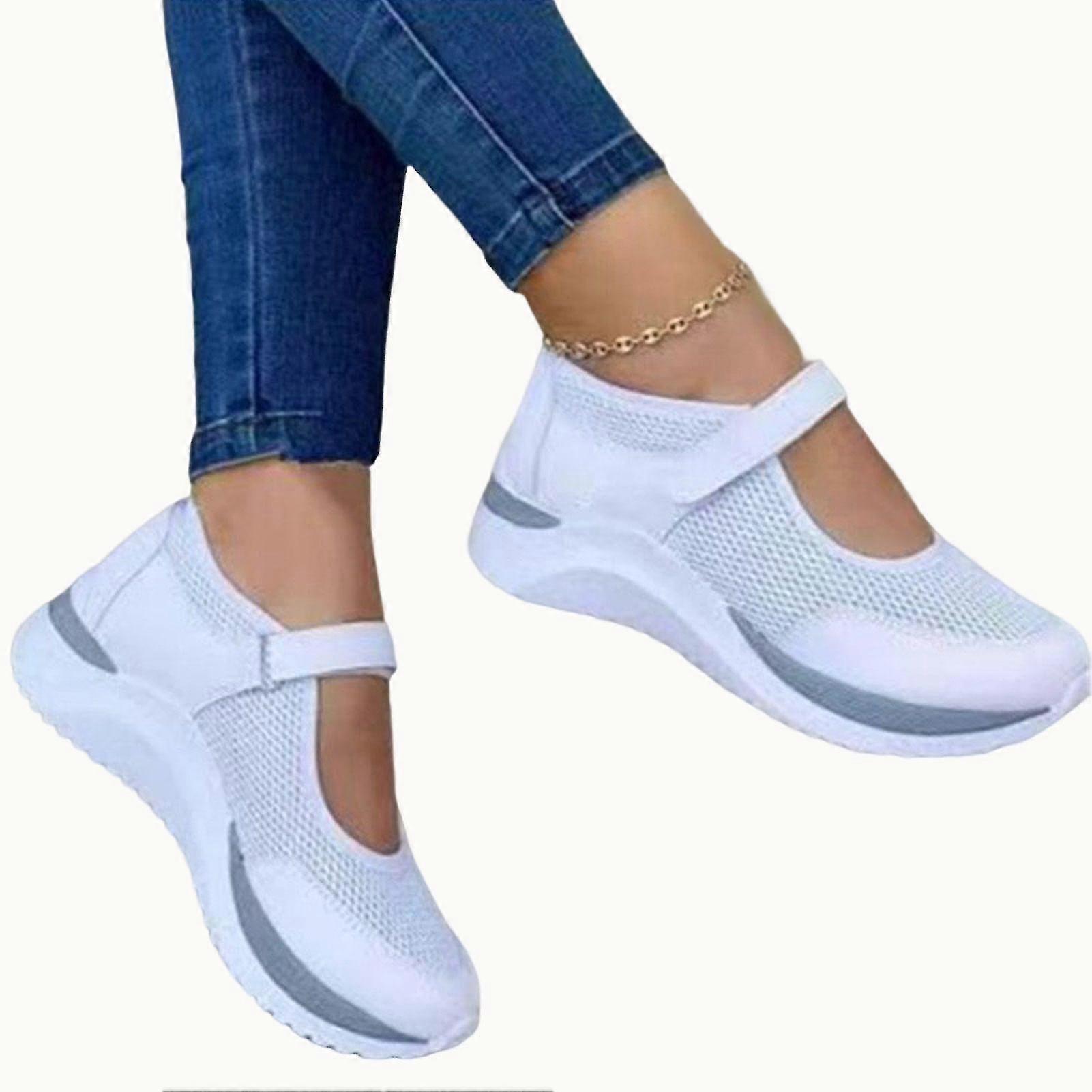 Features: 1.Material: Lightweight mesh upper and non-ip padded sole provide complete breathability heightening effect and ip resistance making you more comfortable while exercising 2. Superb Craftsmanship: Sneakers with superb flyweaving technology are very durable and it can accompany you for a long time. 3. Hook and Loop Sneakers: This is a shoe without lacing you can adjust the degree of elasticity you want by hook and loop suitable for all kinds of foot circumference people with wide feet need not worry to meet your daily wear needs. 4. Occasion: This sneaker can be used as a fitness camping hiking climbing and other essential supplies but also can be a daily casual shoes wear fashionable and trendy. 5.After-sales Service: If you have any problem please contact us immediately we will help you solve it as soon as possible. Specifications: Size: US China Size Foot Length(cm) 5 35 22.5 6 36 23 6.5 37 23.5 7 38 24 7.5 39 24.5 8.5 40 25 9 41 25.5 9.5 42 26 10 43 26.5 Heel Height: Flat heel Sole Material: Polyurethane Lining Material: Cloth Upper Height: Low top Heel Shape: Flat heel Sole Process: Sticky rubber shoes Wearing Style: Hook and Loop Insole MaterialEVA Opening Depth: Shallow mouth (7cm or less) Material Process: PU Notice: 1.Actual color may be ightly different from the image due to light effect. 2.Please allow 1-3cm deviation due to manual measurement. includes: 1 * Pair of Shoes "