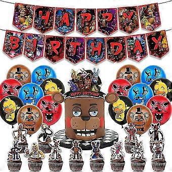 Fnaf Θέμα Γενέθλια Κόμμα Προμήθειες Banner Μπαλόνια Τούρτα Cupcake Topper Διακόσμηση Σετ