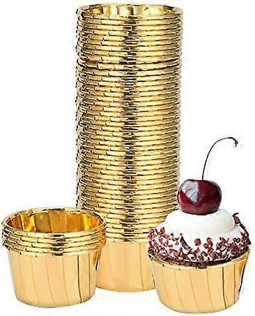Foil Cupcake Liners 100Pcs Gold Cupcake Cases Foil Baking Cups Muffin Wrappers Holiday Party Food Grade Cupcake Liners Cups (Gold)