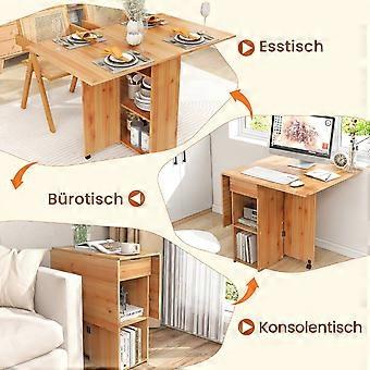 Hopfällbart matbord med 2 hjul, mobilt hopfällbart bord, matsalsbord med 2-vånings förvaringsutrymme