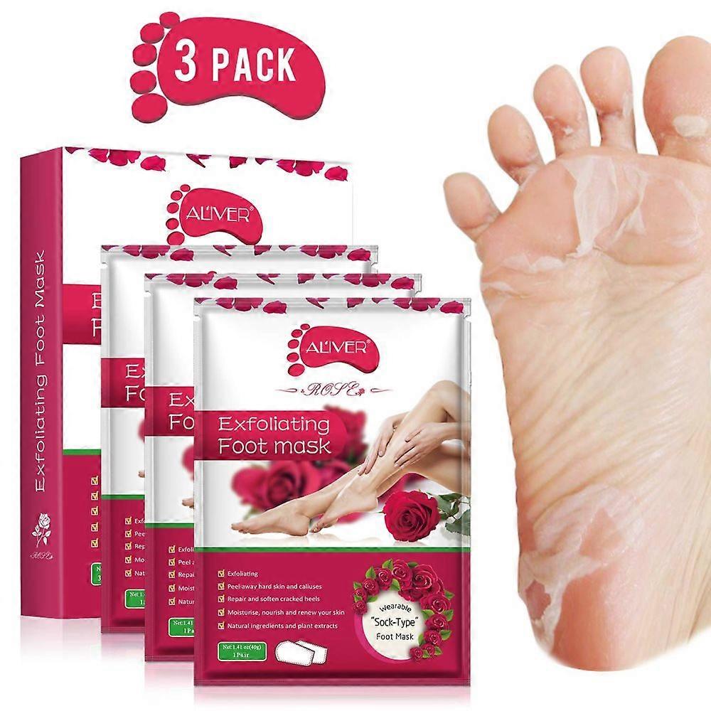 Foot Mask 3 Pack, Exfoliating Foot Peel Mask for Cracked Heels, Dead Skin and Calluses, Repairs Rough Heels(Rose)