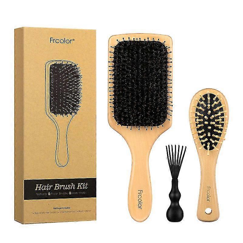 Frcolor Hair Brush Kit Eco-Friendly Massage Boar Bristle Hair Brush Set Handheld Anti-Static Hair Brush Hair Cleaner Kit For Styling Straightening Det