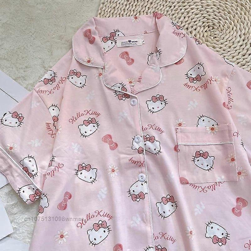 GaiBoSi Sanrio Hello Kitty Sweet 2 Pcs Short Pijamas Summer New Girl Pink Pajamas Women's Cotton Student Cartoon Loose Home Set