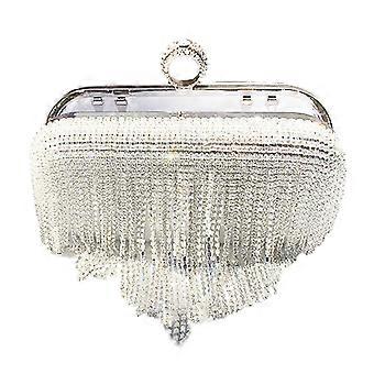 Glitter Rhinestone TasselEvening Bag Party Wedding Clutches Lady Handbag for Women Girl Cocktail Crossbody Shoulder Bag Silver